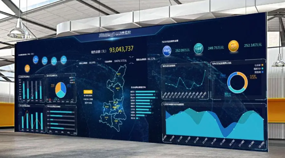 數(shù)據(jù)可視化大屏就是將數(shù)據(jù)通過可視化圖表、圖形、地圖等方式展示在大屏幕上的一種技術(shù)和方法。它的作用是通過視覺化的方式將復雜的數(shù)據(jù)信息轉(zhuǎn)化為直觀、易于理解的圖像,幫助人們更好地理解和分析數(shù)據(jù),以及做出相應(yīng)的決策。